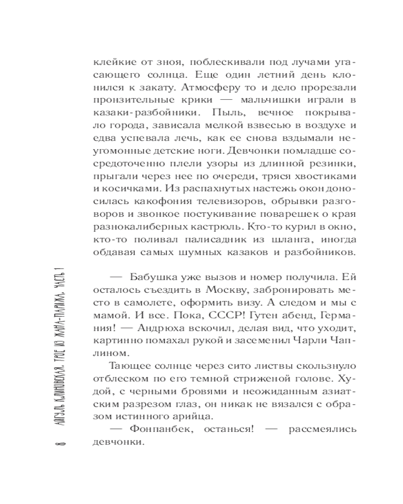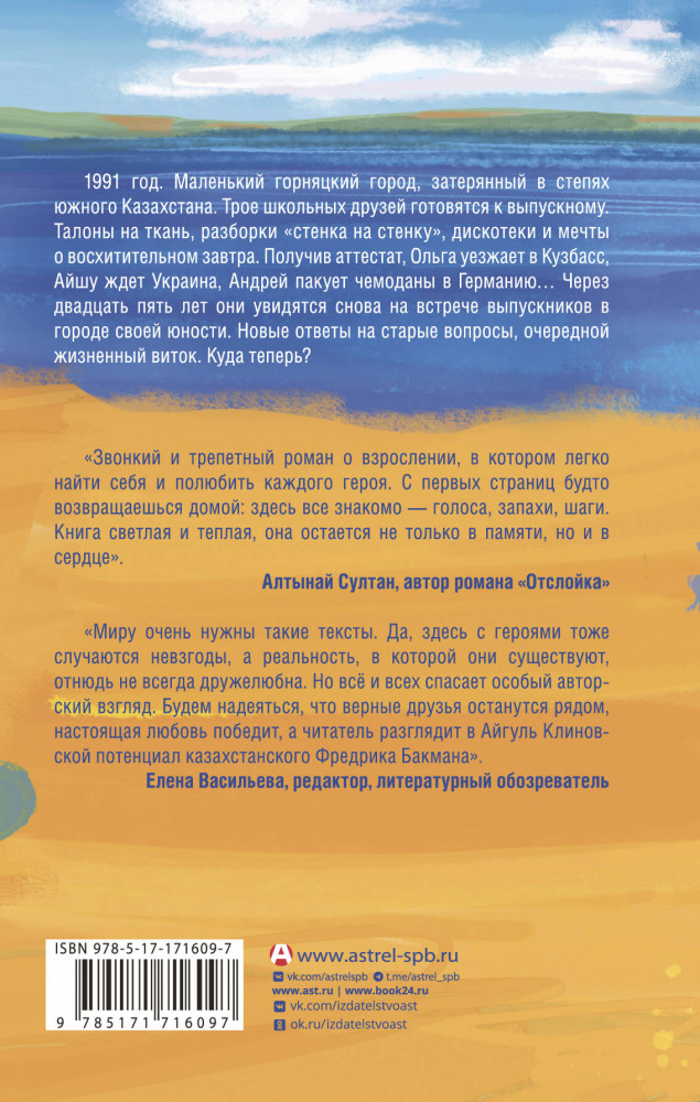 Очень теплая и душевная история трех одноклассников из маленького городка Жанатас. Первая любовь, трагедии и успехи и все это на фоне распавшейся страны. Читается легко, затягивает. После прочтения остается легкая грусть, радость сквозь слезы. Само издание качественное, красивая обложка.