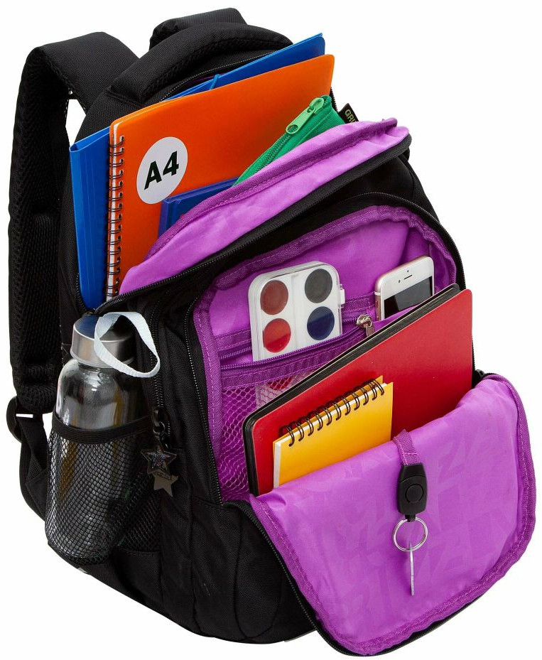 Рюкзак предназначен для учащихся начальной и средней школы. Анатомическая спинка и широкие лямки обеспечивают комфорт и равномерное распределение нагрузки. Нагрудная стяжка со свистком помогает надёжно фиксировать рюкзак даже на зимней одежде. Светоотражающие элементы по всем сторонам повышают безопасность в тёмное время суток. Рюкзак выполнен из износостойкого материала с водо- и грязеотталкивающей пропиткой. Оснащён тремя вместительными отделениями, которые вмещают учебники и тетради формата А4. В основном отделении — карман для планшета или ноутбука до 13″. Передний отсек включает съёмный брелок-держатель для ключей и три дополнительных кармана. Двунаправленные молнии с брендированными пуллерами легко открываются и закрываются. Для удобства предусмотрены две ручки: основная и петля, а также два боковых кармана для бутылки с водой. Продуманная конструкция делает этот рюкзак практичным и удобным решением для школы.