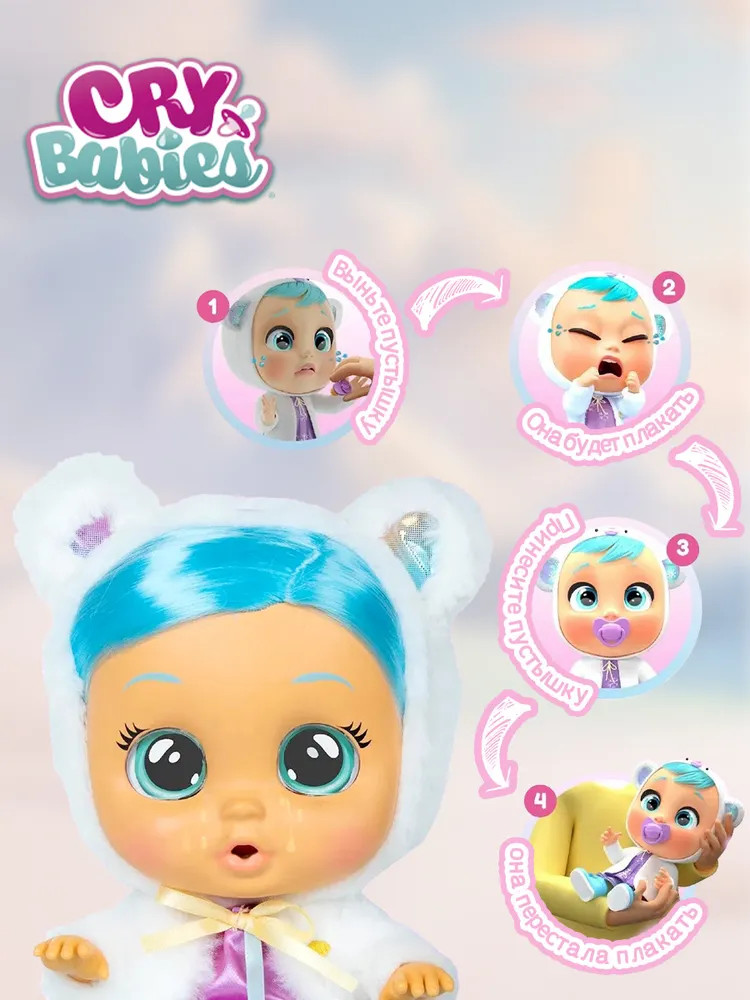 В данный момент этот товар отсутствует в продаже. Возможно, у нас найдется аналогичный или похожий товар здесь. Серия: Cry Babies Интерактивная кукла Cry Babies Dressy Kristal — плачет настоящими слезами и издаёт реалистичные звуки. Откройте для себя новый стиль куклы Kristal из коллекции Cry Babies Dressy Fantasy World! Эта очаровательная малышка — не просто кукла, а настоящий друг для ролевых игр, который учит заботе, сочувствию и развивает воображение ребёнка.