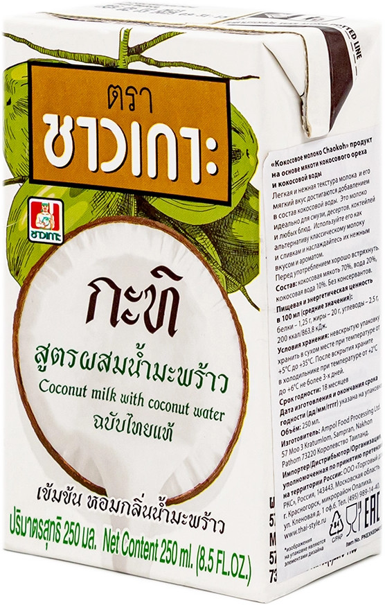 Chaokoh Кокосовое молоко на основе мякоти кокосового ореха и кокосовой водыВ данный момент этот товар отсутствует в продаже. Возможно, у нас найдется аналогичный или похожий товар здесь. Густое кокосовое «молоко», изготовленное на основе кокосовой мякоти и кокосовой воды. Оно отличается нежнейшей бархатистой текстурой, напоминающей сливки, и мягким, сливочным, чуть сладковатым вкусом, хотя в составе нет ни грамма добавленного сахара. Кокосовое молоко прекрасно подойдёт для приготовления азиатских супов, оригинальных соусов, полезных десертов и сочных смузи, а также для добавления в напитки и каши. Без лактозы. Без сахара. Без консервантов. Используйте вместо традиционного молока. Перед употреблением рекомендуем хорошо размешать или потрясти. |