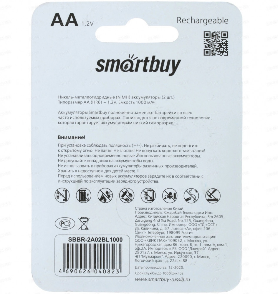 💳 Оплатить за товар можно при получении 🇰🇿 Есть бесплатная доставка по Казахстану от 1 дня 🎁 Копите бонусы с каждой покупки NiMh Smartbuy AA-2BL 1000 mAh — это никель-металлогидридные аккумуляторы высокого качества. Перезаряжаемые аккумуляторы Smartbuy используются в широком спектре устройств. Используются как и обычные батарейки. Но их можно использовать до 500 циклов при подзарядке. Они имеют начальный заряд и сразу готовы к работе. Сохраняют энергию длительное время. Перезаряжаемые аккумуляторы Smartbuy — это экономия и забота об окружающей среде. |