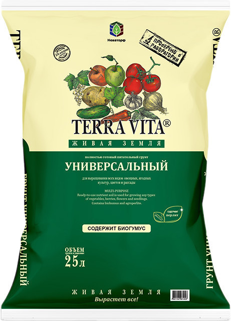 Terra Vita Грунт универсальныйВ данный момент этот товар отсутствует в продаже. Возможно, у нас найдется аналогичный или похожий товар здесь. Серия: Живая земля Полностью готовый питательный грунт применяется для выращивания всех видов овощных, ягодных культур, цветов и рассады. Улучшает всхожесть семян, приживаемость рассады. Повышает урожайность и качество овощей и плодов. Обеспечивает ускорение роста, развития и созревания овощей и корнеплодов, получение высокого урожая. Улучшает вкусовые и питательные свойства продукции. Восстанавливает плодородие и естественный биоценоз почв. |