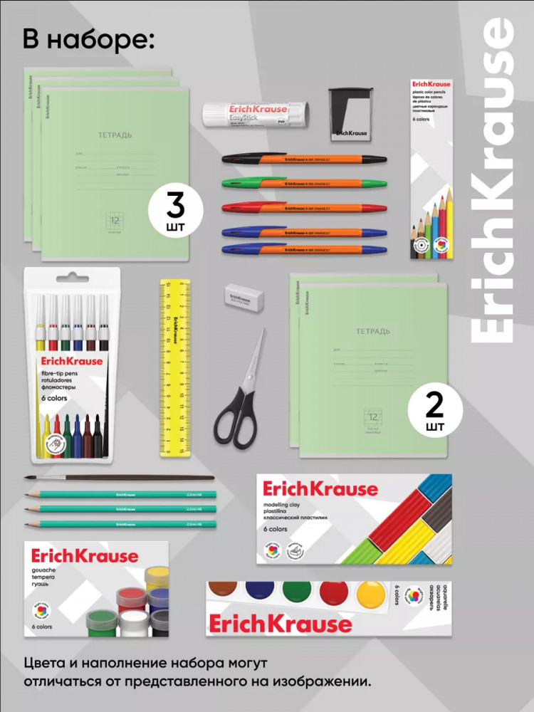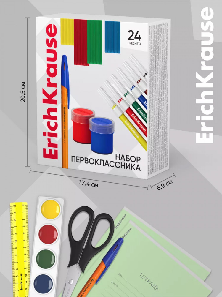 💳 Оплатить за товар можно при получении 🇰🇿 Есть бесплатная доставка по Казахстану от 1 дня 🎁 Копите бонусы с каждой покупки Набор школьно-письменных и канцелярских принадлежностей включает в себя 24 предмета первой необходимости первоклассника и соответствует заявленным требованиям на начальном этапе школьной программы. Состав набора первоклассника ErichKrause скомплектован на основе рекомендаций учителей начальных классов. |