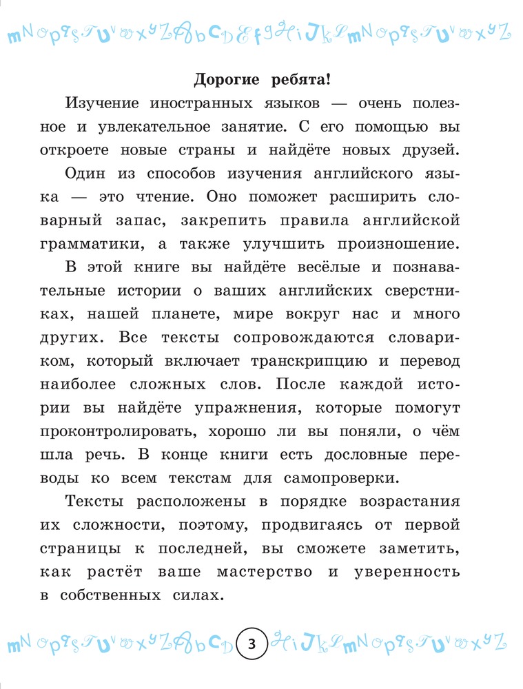Очень хорошая книга, помогает в изучении языка. В первой части на английском языке сначала даются слова, встречающиеся в тексте, затем сам текст, после идут тестовые задания и вопросы к тексту, на которые необходимо ответить. Во второй части даны сами тексты уже в переводе на русский язык. Спасибо.