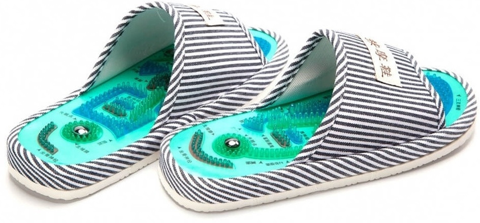 Массажные тапочки «Шиацу» — это комплексное решение по борьбе с усталостью в ногах, пяточной шпорой и хронической бессоннице, а так же эффективное средство для улучшения кровообращения в нижних конечностях. Сочетают в себе все преимущества точечного массажа стоп и магнитотерапии. Массажные тапочки Шиацу — комфортная забота о Вашем самочувствии.