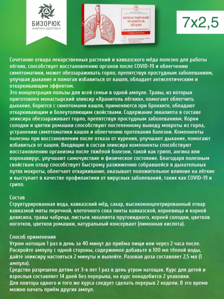 Бизорюк Элексир «Монастырский хранитель лёгких»
