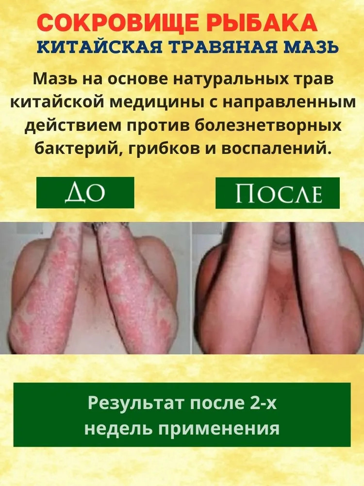 💳 Оплатить за товар можно при получении 🇰🇿 Есть бесплатная доставка по Казахстану 🎁 Копите бонусы с каждой покупки Высокоэффективное средство китайской медицины для лечения и профилактики псориаза, дерматита, лишая, стафилококка, экземы, чесотки и кожного зуда. Уникальный натуральный состав этой мази качественно противодействует распространению плесневых грибков и надежно предупреждает появление кожных заболеваний. Мазь «Сокровище рыбака» — это натуральный продукт с ценными лечебными компонентами в составе. Данное средство является идеальным решением проблемы большинства кожных заболеваний и производит потрясающий терапевтический эффект при лечении псориаза, экземы и дерматита. Мазь максимальна эффективна в борьбе с инфекциями, вызванными плесневелыми грибками и бактериями. Производит быстрое восстанавливающее и косметическое действие, снимает зуд, глубоко и мягко проникает в слои кожи, устраняя не только внешние симптомы и признаки болезни, но и саму причину возникновения недуга. Безопасна для применения и не вызывает побочных реакций организма. |