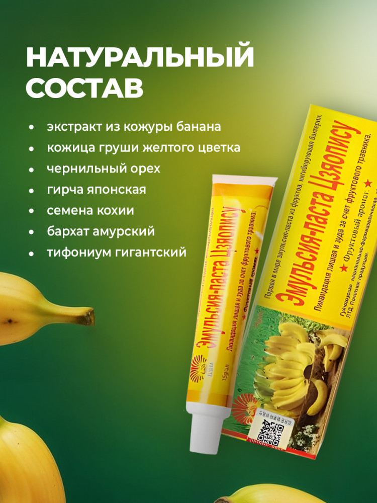 Мазь с бананом от лишая, экземы, псориаза и при других кожных заболеваниях «Цзяопису»-13% +11