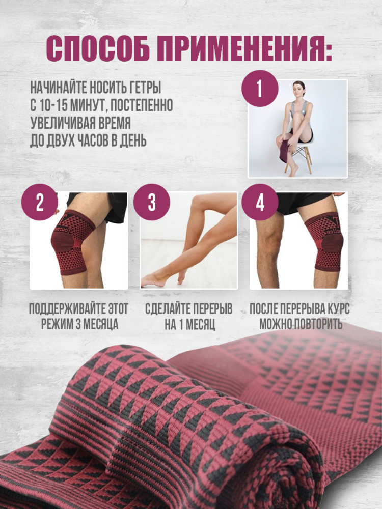 💳 Оплатить за товар можно при получении 🇰🇿 Есть бесплатная доставка по Казахстану от 1 дня 🎁 Копите бонусы с каждой покупки Гетры с турмалином и магнитными минералами обеспечивают полноценную физиотерапию в домашних условиях. Снимают боль, отечность и усталость ног. При регулярном использовании эффективны против варикоза, артрита и ревматизма. Укрепляют иммунитет, ускоряют биохимические процессы, способствуют выведению из организма токсинов и шлаков. Содействуют быстрой регенерации тканей, а также восстановлению после травм, растяжений и физических нагрузок. |