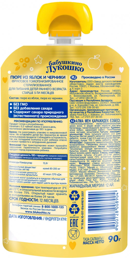 Бабушкино Лукошко Пюре детское «Яблоко, черника»