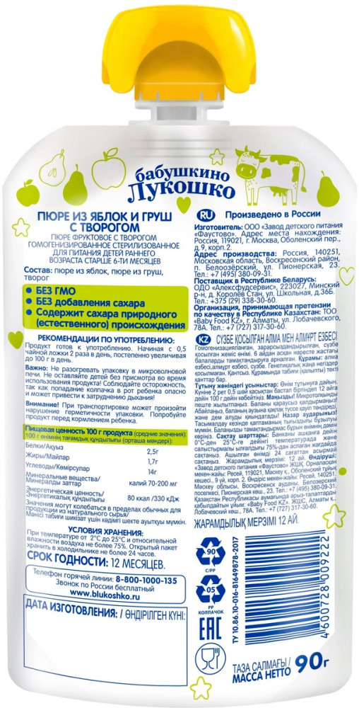 Бабушкино Лукошко Пюре детское «Яблоко, груша, творог»