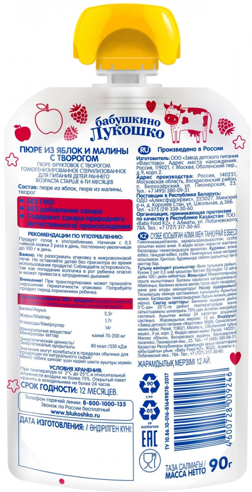 Бабушкино Лукошко Пюре детское «Яблоко, малина, творог»