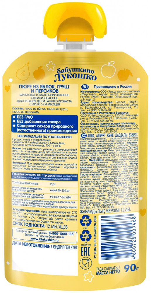 Бабушкино Лукошко Пюре детское «Яблоко, груша, персик»