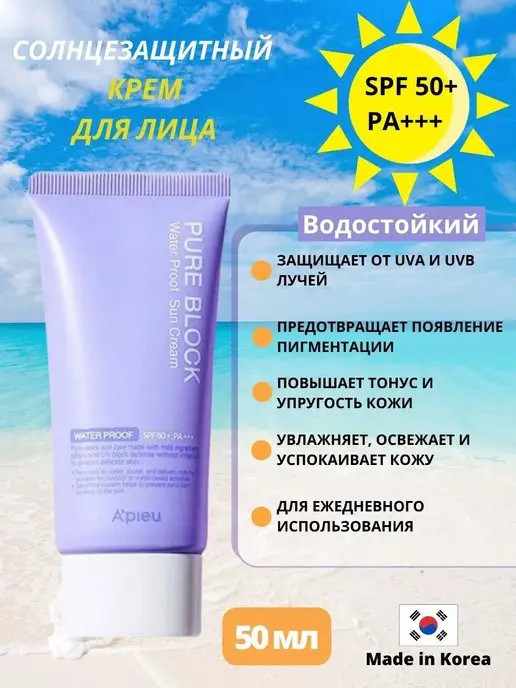 A'pieu Крем для лица солнцезащитный SPF 50+ «Pure Block Water Proof Sun Cream»-22% +28