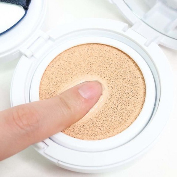 Несколько лет пользуюсь этим кушоном. Хорошое тональное средство. Преимущество кушона в том, что она компактная, можно брать в сумку и всё в ней есть: спонжик, зеркало. Очень удобно, в течение дня можно поправлять тон.