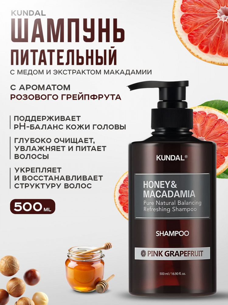 Kundal Шампунь для волос безсульфатный «Honey & Macadamia: Pink Grapefruit»
