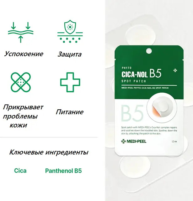 Medi Peel Патчи от прыщей успокаивающие «Phyto CICA-Nol B5 Spot Patch»-9% +21 неэффективность