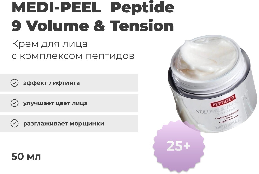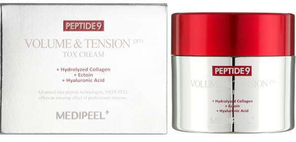 Пептидный крем Medi-Peel Peptide 9 Volume &Tension Tox Cream Pro — это улучшенная формула питательного омолаживающего крема, которая действует быстрее и эффективнее. Разглаживает, уплотянет и подтягивает кожу, уменьшает глубину морщин, восстанавливает эластичность и упругость, борется с возрастными изменениями. Способствует укреплению овала лица, улучшает тургор и моделирует. Уменьшает выраженность носогубных складок, морщин в уголках глаз, в области межбровья и вокруг рта. Устраняет сухость и шелушение, удерживает влагу в клетках, укрепляет естественный защитный барьер. Смягчает, выравнивает микрорельф и дарит бархатистую текстуру. Имеет приятную тающую консистенцию, отлично впитывается и не оставляет липкости. В комплекте идёт лопатка для нанесения.