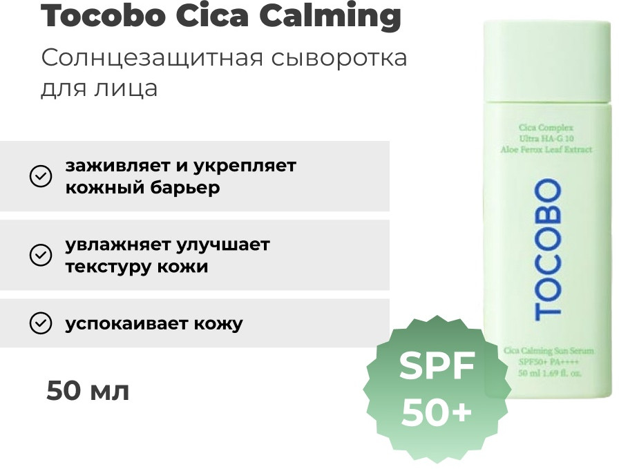 Tocobo Крем солнцезащитный «Cica Calming Sun Serum SPF 50+ PA+++»-34% +50