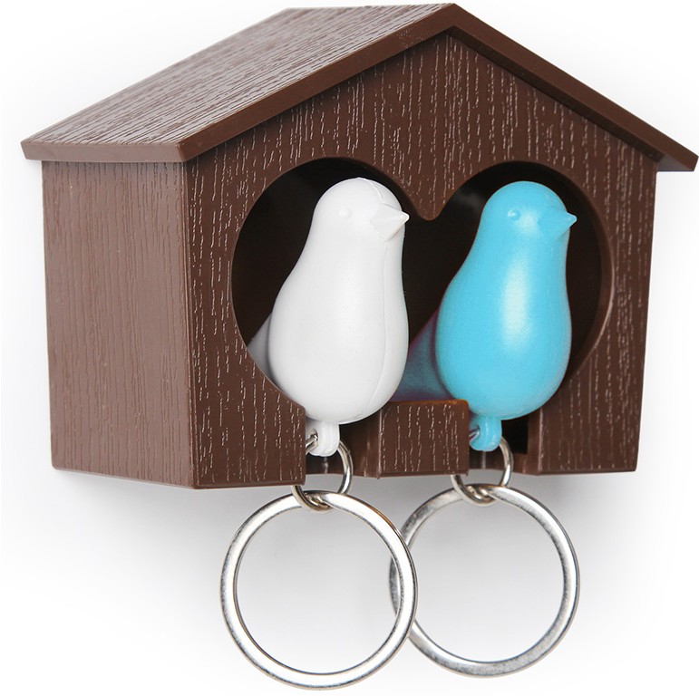Qualy Держатель + брелок для ключей двойной «Sparrow», коричневый/голубой+408