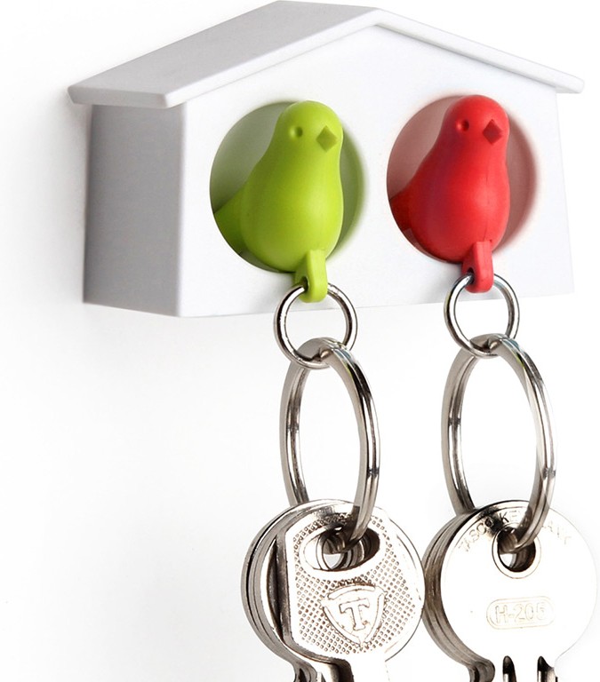 | Qualy Держатель + брелок для ключей двойной «Mini Sparrow», зеленый/красный