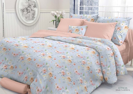 Комплект постельного белья «Leticia» изготовлен из ткани перкаль. Ткань "Перкаль" изготавливается из высококачественного хлопка, с использованием, тончайших нитей, что делает её удивительно нежной и гладкой, и при этом очень плотной.