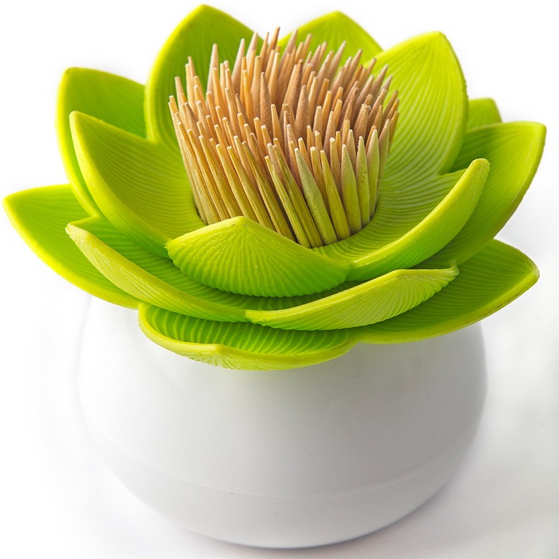 Qualy Держатель для зубочисток «Lotus»В данный момент этот товар отсутствует в продаже. Возможно, у нас найдется аналогичный или похожий товар здесь. Серия: Lotus Зубочистки всегда рассыпаются, их трудно вставить обратно, не уколоться и не сломать. Держатель Lotus — это не только элемент декора Вашей кухни, но и верный помощник в хранении зубочисток. |