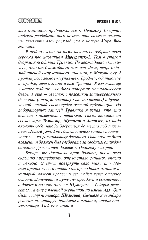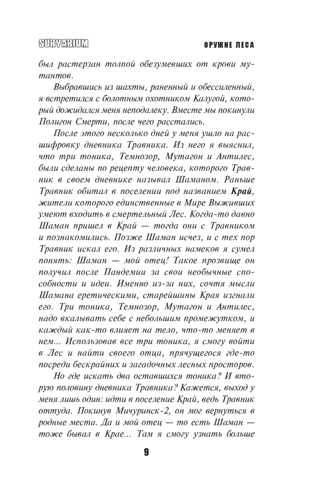 Оружие лесаВ данный момент этот товар отсутствует в продаже. Возможно, у нас найдется аналогичный или похожий товар здесь. Серия: Проект Survarium Пытаясь разгадать тайну пропавшего отца и разобраться в секретах прошлого, Стас Логин отправляется в легендарное поселение Край, расположенное на границе обитаемого мира. Про Край много рассказывают, но мало кто знает, что происходит там на самом деле. Дорога туда трудна, особенно когда тебя преследует отряд ренегатов из Армии Возрождения. Ну а если на пути твоем встает хитрый как змея старейшина Края, отряд боевой разведки "лесные волки" и сам Палач… Этот человек не зря получил свое прозвище! Теперь величайший убийца Мира Выживших охотится на нашего героя. |