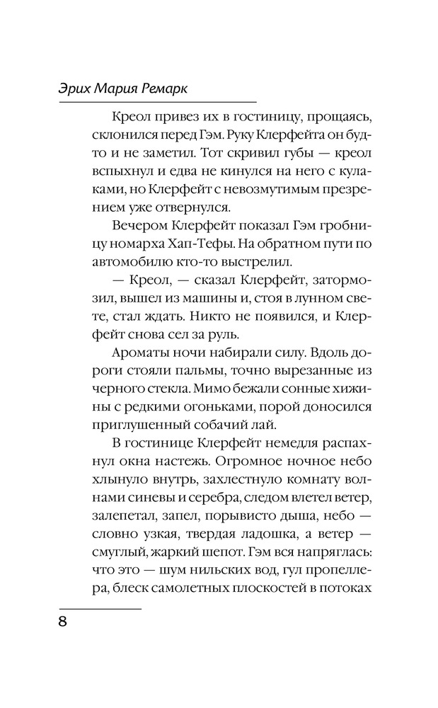 В целом роман произвел на меня приятное впечатление, не смотря на то что немного затянут и запутан. Суть романа, как я поняла, в познании жизни, в наслаждение одиночеством. Можно наслаждаться каждым моментом и радоваться тем что жив. Вот одна из заключительных сцен и размышлений главной героини романа Ремарка- Гэм. «Жизнь-это все. Гэм ни о чем не думала,она просто шла и жила этим. Жизнь-это всё.. Я ощущаю...божественно чувство..мир молод, как и я... И пока я ощущаю себя, мир существует..Пока я живу собой, я живу всеми..»