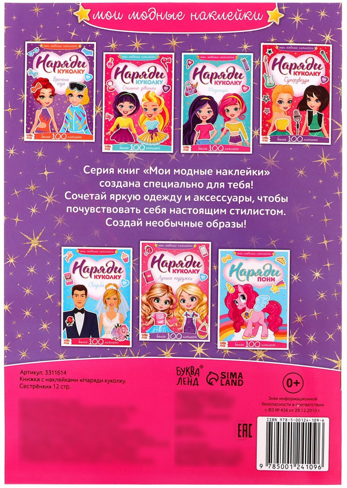Наряди куколку. СестрёнкиВ данный момент этот товар отсутствует в продаже. Возможно, у нас найдется аналогичный или похожий товар здесь. Задумываетесь о том, как привить ребёнку любовь к чтению? Рецепт прост: возьмите издание с красивыми картинками, захватывающей историей и милыми героями. Наклейки «Наряди куколку. Сестрёнки» — отличный вариант для тех родителей, которые привыкли окружать своего малыша только лучшими и качественными вещами. За такой книжкой ваш ребёнок проведёт время с пользой и удовольствием, узнает много нового и интересного. |
