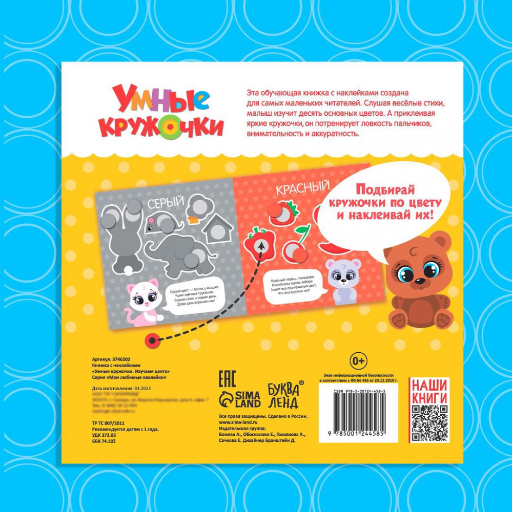 💳 Оплатить за товар можно при получении 🇰🇿 Есть бесплатная доставка по Казахстану от 1 дня 🎁 Копите бонусы с каждой покупки Задумываетесь о том, как привить ребёнку любовь к чтению? Рецепт прост: возьмите издание с красивыми картинками, захватывающей историей и милыми героями. Наклейки «Умные кружочки. Изучаем цвета» — отличный вариант для тех родителей, которые привыкли окружать своего малыша только лучшими и качественными вещами. За такой книжкой ваш ребёнок проведёт время с пользой и удовольствием, узнает много нового и интересного. |