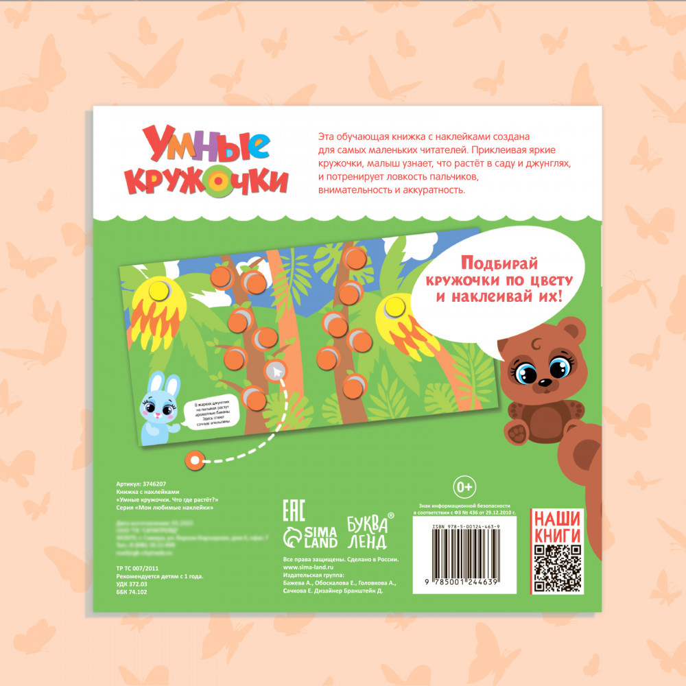 💳 Оплатить за товар можно при получении 🇰🇿 Есть бесплатная доставка по Казахстану от 1 дня 🎁 Копите бонусы с каждой покупки Задумываетесь о том, как привить ребёнку любовь к чтению? Рецепт прост: возьмите издание с красивыми картинками, захватывающей историей и милыми героями. Наклейки «Умные кружочки. Что, где растёт?» — отличный вариант для тех родителей, которые привыкли окружать своего малыша только лучшими и качественными вещами. За такой книжкой ваш ребёнок проведёт время с пользой и удовольствием, узнает много нового и интересного. |