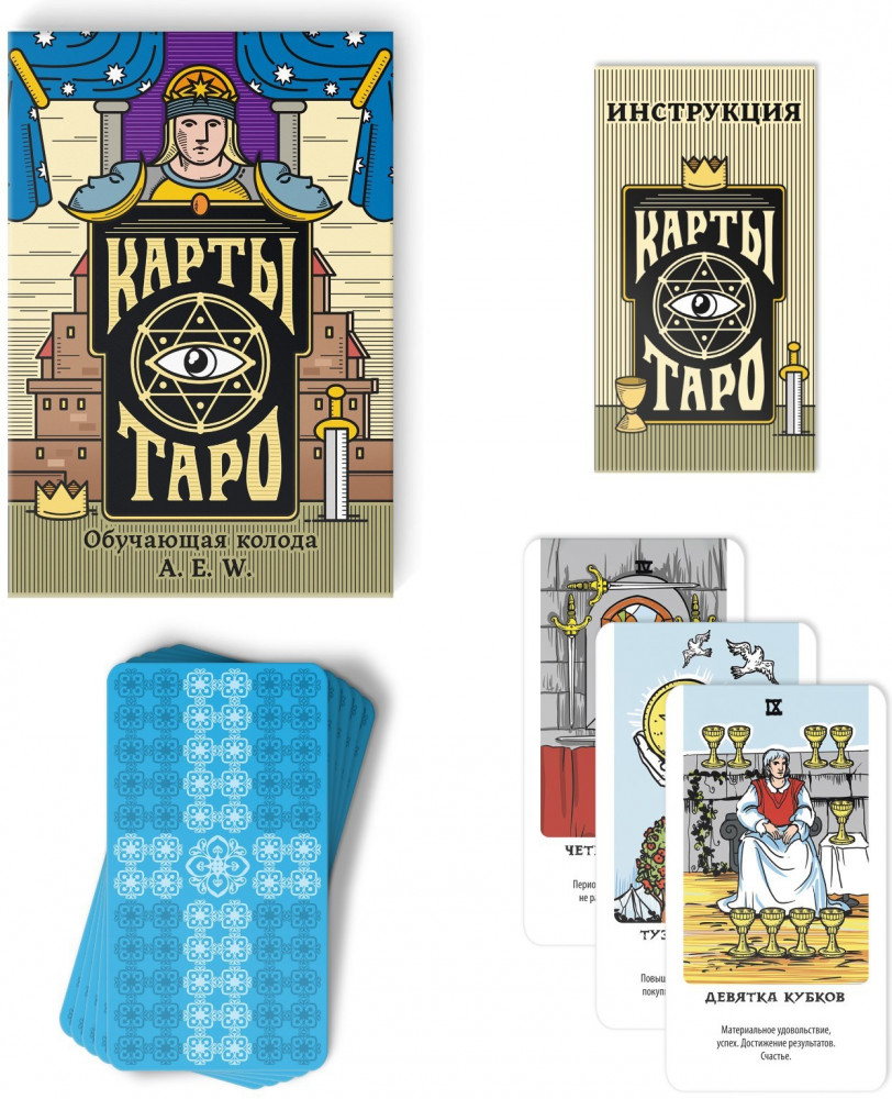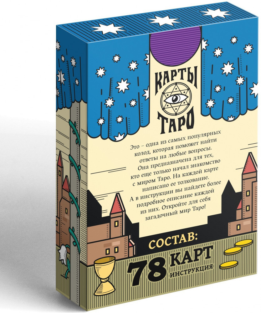 Вы только начинаете знакомство с загадочным миром Таро? Тогда эта колода подойдёт вам. В инструкции вы найдёте подробное описание каждой карты, а также её значение в прямом и перевёрнутом положении. Кроме этого, в инструкции находится подробное описание, значение и особенности основных раскладов: «Три карты», «Подкова», «Обретение любви». К каждому раскладу прилагается изображение.