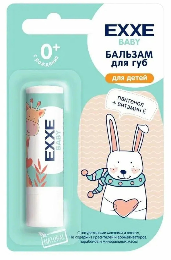 EXXE Бальзам для губ детскийВ данный момент этот товар отсутствует в продаже. Возможно, у нас найдется аналогичный или похожий товар здесь. Бальзам для губ «Exxe Baby» для детей для ежедневного ухода за нежной кожей губ. Благодаря особой формуле с натуральными маслами и воском идеально подходит для детей. Пантенол и Витамин Е смягчают и защищают от обветривания, бисаболол и витамин А увлажняют и восстанавливают кожу губ, устраняют шелушения.Благодаря особой формуле с натуральными маслами и воском идеально подходит для детей. Пантенол и Витамин Е смягчают и защищают от обветривания, бисаболол и витамин А увлажняют и восстанавливают кожу губ, устраняют шелушения. |