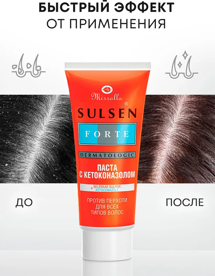 Mirrolla Паста от перхоти с кетоконазолом «Sulsen форте»В данный момент этот товар отсутствует в продаже. Возможно, у нас найдется аналогичный или похожий товар здесь. Серия: Sulsen Линия средств Mirrolla Sulsen разработана специально для лечения и профилактики перхоти. Сульсен (дисульфид селена) — препарат для лечения волос и кожи головы, который широко используется трихологами и дерматологами. Он особенно эффективен в отношении перхоти, себореи, грибковых поражений. |