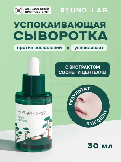 Round Lab Ампула для лица с экстрактами сосны и центеллы для проблемной кожи «Pine Calming Cica Ampoule»+85