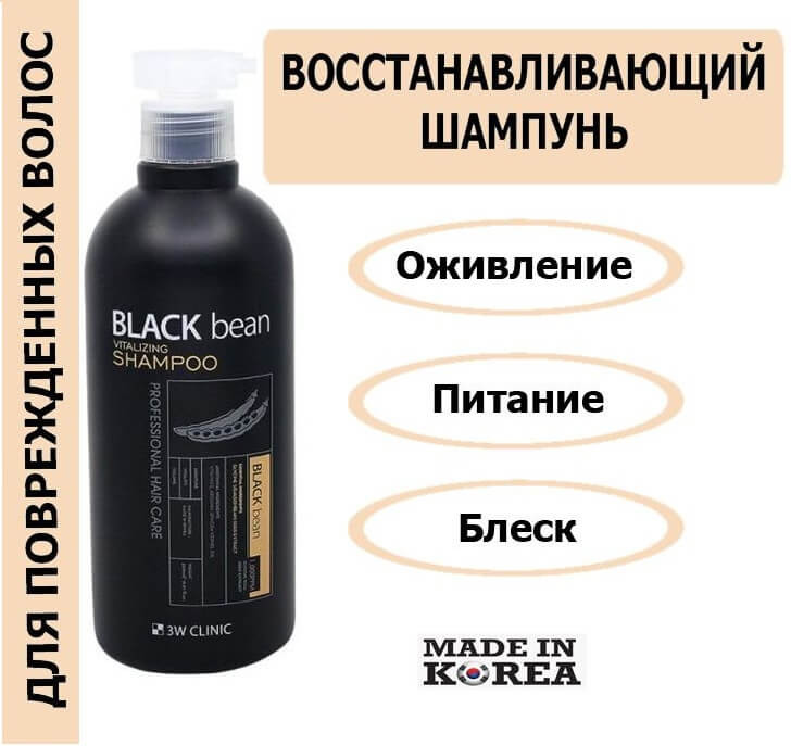3W CLINIC Шампунь для волос с экстрактом черной фасоли восстанавливающий «Black Bean Vitalizang Shampoo»