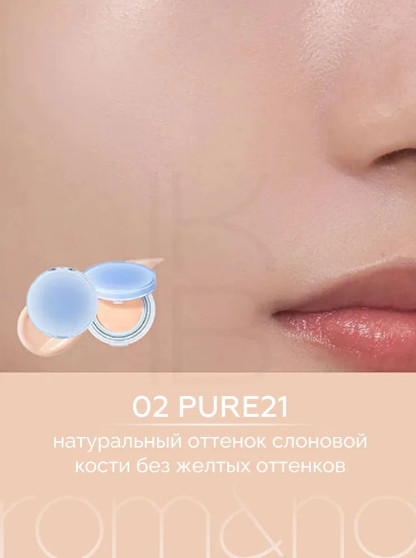 Rom&nd Кушон для лица с сияющим финишем тональный увлажняющий «Bare Water Cushion» SPF38 PA++++, оттенок 02 Pure 21