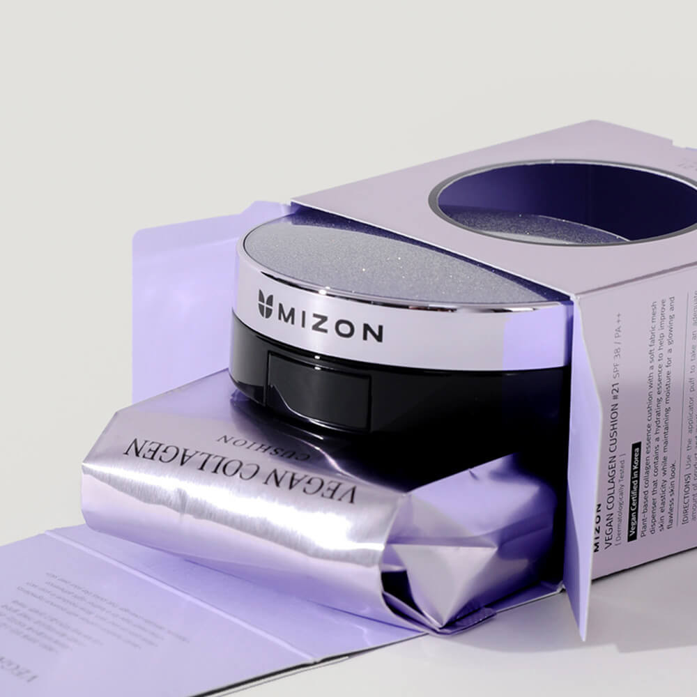 Mizon Кушон для лица тональный «Vegan Collagen Cushion», оттенок 21 Светло-бежевый