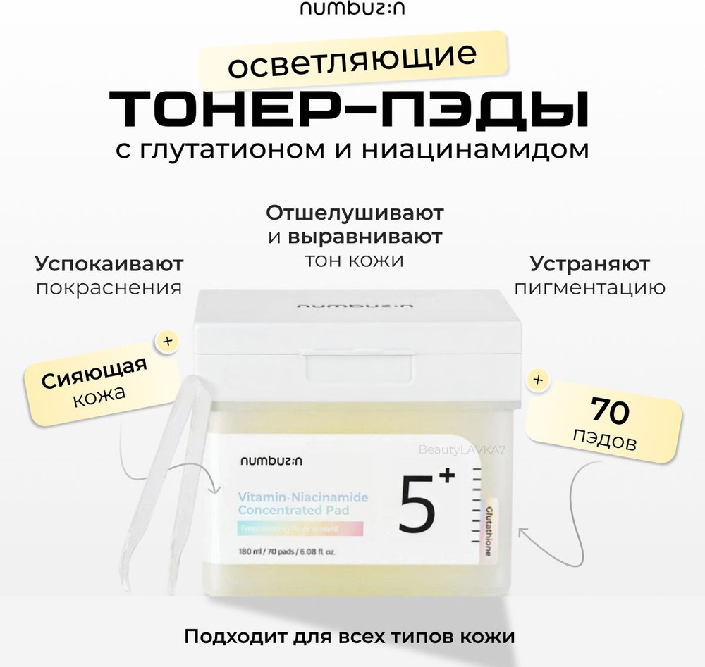 Numbuzin Пилинг-пэды с ниацинамидом «No.5 Vitamin-Niacinamide Concentrated Pad»