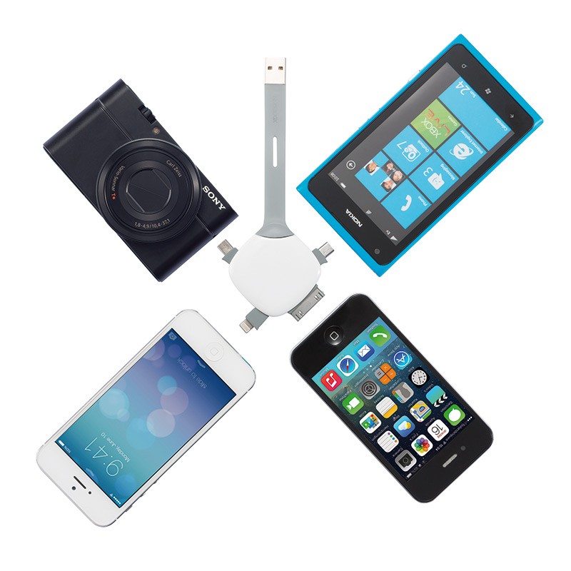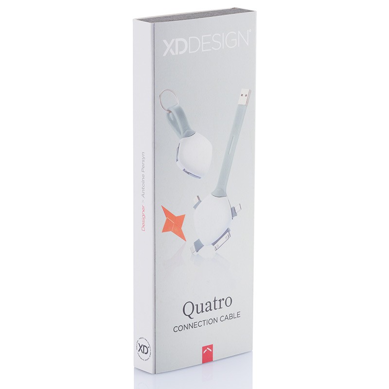 XD design Кабель — переходник «Quatro»В данный момент этот товар отсутствует в продаже. Возможно, у нас найдется аналогичный или похожий товар здесь. USB-кабель с 4 переходниками: Apple dock (подходит для зарядки большинства гаджетов от Apple, например, iPhone 4, iPad), Apple Lightning (более современный разъем для iPhone 5, iPad Air, iPad mini), микро-USB и мини-USB. Подходит для зарядки гаджетов от компьютера и для копирования информации. Запросто вешается на колечко как брелок для ключей, так что просто прицепите его к сумке и носите с собой всегда и везде. |