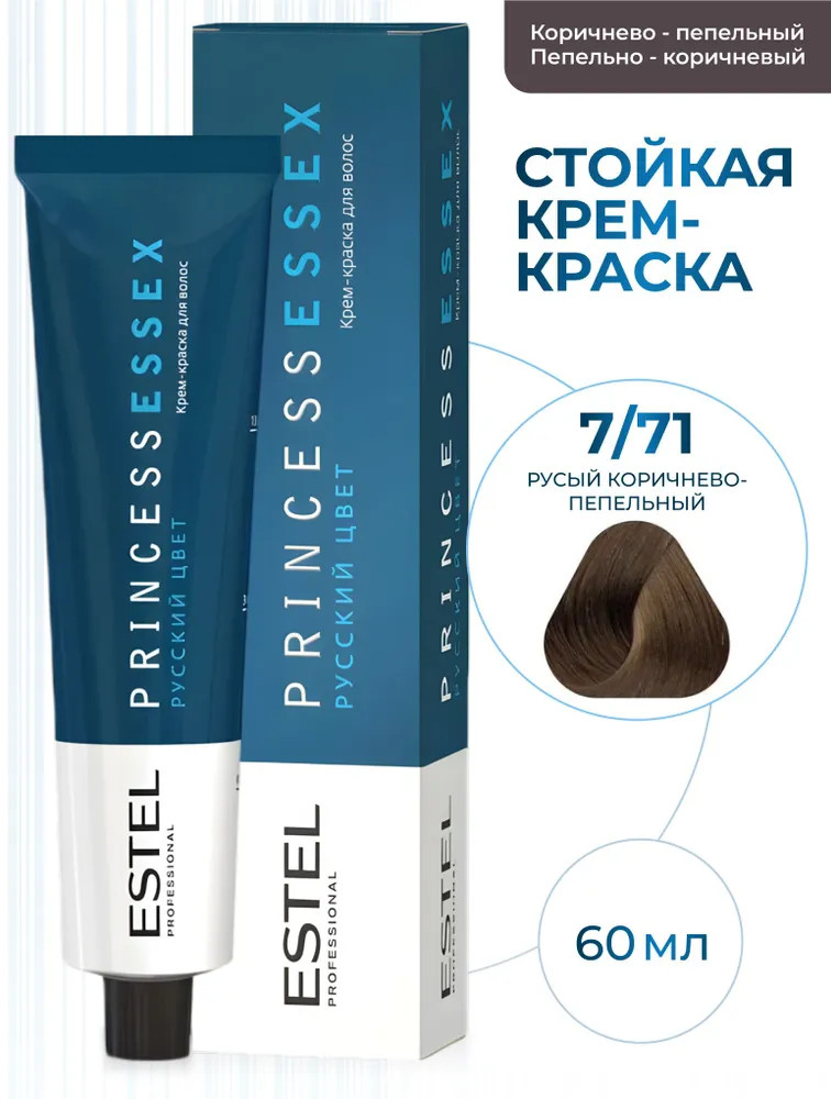 Крем-краска для волос, оттенок 7/71 средне-русый коричнево-пепельный | Princess Essex | Estel