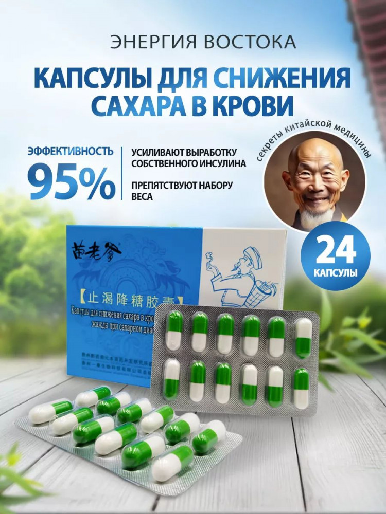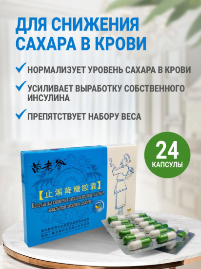 Капсулы для снижения сахара в крови и удаления жажды при сахарном диабете