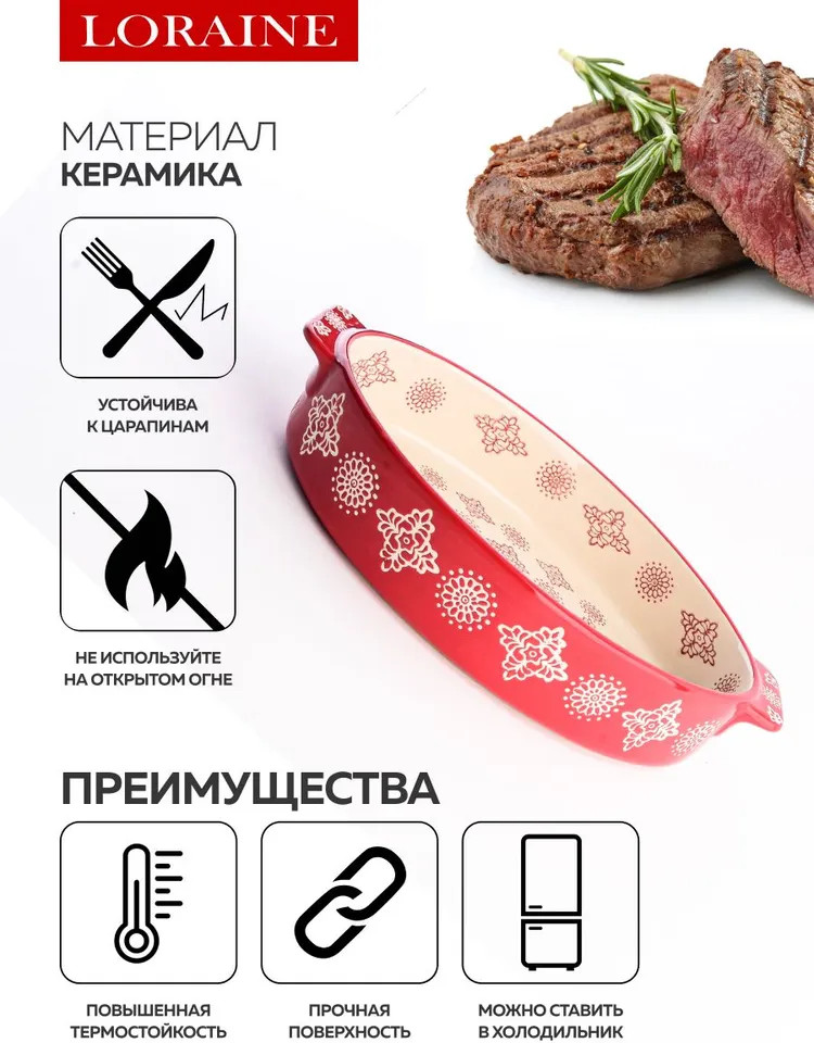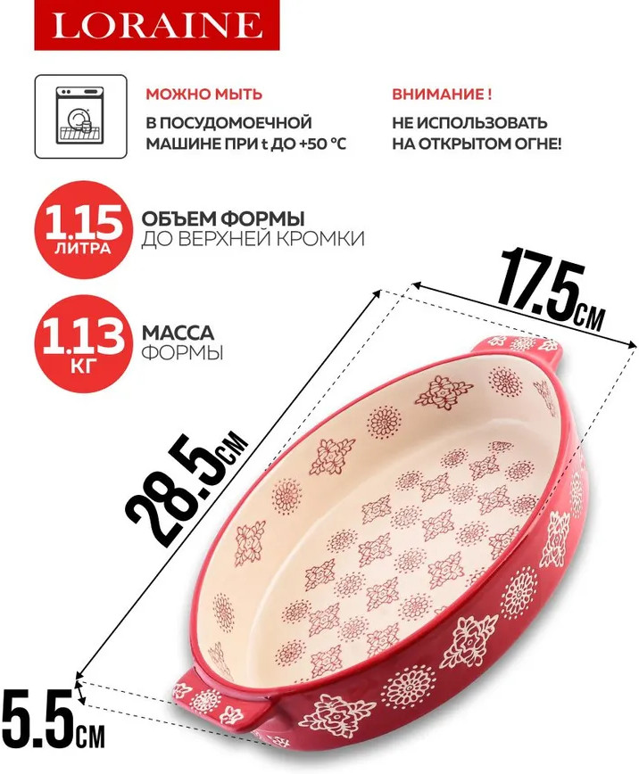 Форма для запекания Loraine — ваш надежный партнер в кулинарных свершениях, дарящий безграничные возможности для творчества на кухне. Эта незаменимая помощница создана для воплощения самых смелых кулинарных фантазий, позволяя легко готовить в духовке и микроволновой печи настоящие шедевры, достойные восхищения. Изготовленная из высококачественной жаропрочной керамики, она выдерживает впечатляющий диапазон температур от −20 до +250°C градусов, гарантируя безопасность и долговечность при каждом использовании. Керамика не только устойчива к экстремальным перепадам температур, но и бережно сохраняет естественный вкус и богатый аромат продуктов, раскрывая их лучшие качества.