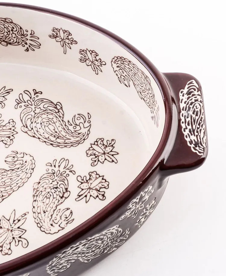 Данная посуда станет настоящим украшением праздничного застолья или незаменимым помощником для большой семьи, позволяя легко приготовить восхитительный обед или ужин, которые непременно удивят и восхитят ваших гостей. Керамическая жаровня — это выбор тех, кто любит готовить и ценит каждую минуту своего времени. Она легко моется, не требует сложного ухода и подходит для мытья в посудомоечной машине, что делает ее эксплуатацию еще более удобной и приятной. Эта керамическая форма для выпечки — не просто красивая и функциональная посуда, но и прекрасный подарок на любой праздник, будь то Новый год, Рождество, День рождения или новоселье, который обязательно будет оценен по достоинству.
