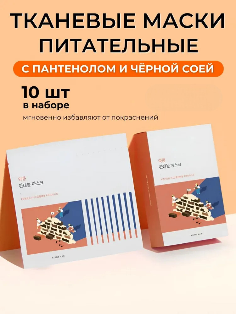 Round Lab Набор масок для лица с чёрной соей и пантенолом барьерных «Soybean Panthenol Mask»