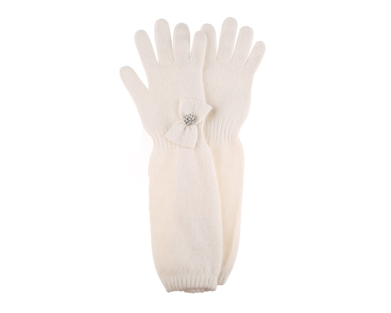 Женские удлиненные вязаные перчатки Fabretti. Модель украшает оригинальный бантик со стразами. Без подкладки. Длина пальцев - средняя. Отличное дополнение к Вашему образу.