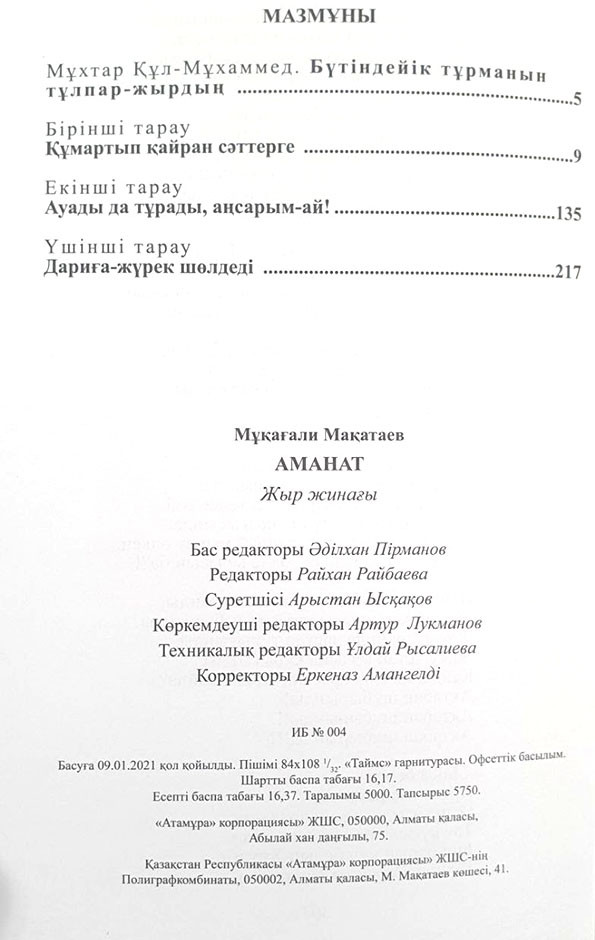 💳 Оплатить за товар можно при получении 🇰🇿 Есть бесплатная доставка по Казахстану от 1 дня 🎁 Копите бонусы с каждой покупки Өткен ғасырдың соңғы 1999 жылы «Атамұра» баспасы қазақтың талантты ақыны Мұқағали Мақатаевтың көзі тірісінде жарияланбаған бір топ өлеңдері қосылған «Аманат» жыр жинағын шығарды. Кітаптың аты да ақынның өз өлеңінен алынды. |