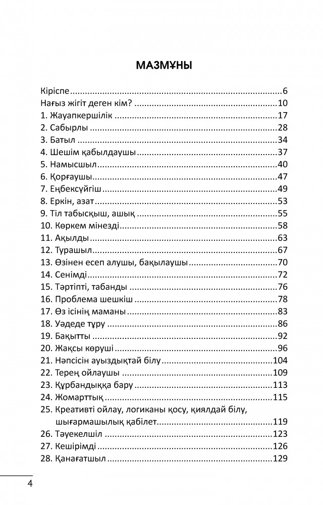 💳 Оплатить за товар можно при получении 🇰🇿 Есть бесплатная доставка по Казахстану от 1 дня 🎁 Копите бонусы с каждой покупки Ер азаматтың ішіне ат басындай шер қатады. «Елімді жамандықтан қайтсем құтқарам, жақсылыққа қалай жеткізем?» дейтін нағыз шерлі жігіттерге мұқтажбыз. Халықтың жүгін көтерген ерді ел мақтайды. Ел мақтаған жігітті қыз жақтайды. Нағыз азаматтың қасиеттерін бойға сіңіріп, сипаттарын үйреніп, кеудесі хикметке, тұла бойы күшке, басы суық ақылға, жүрегі нұрға толы тұлға болыңыз. Бұл кітапта жігіттің 40 қасиеті берілген. Қазақ тарихынан оқиғалар беріліп, тұлғалардың ерлігі баяндалған. Кітап жігіттің рухын оятады. |