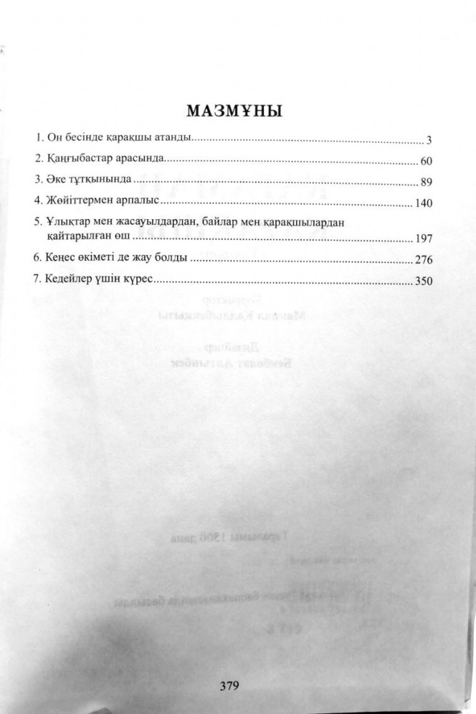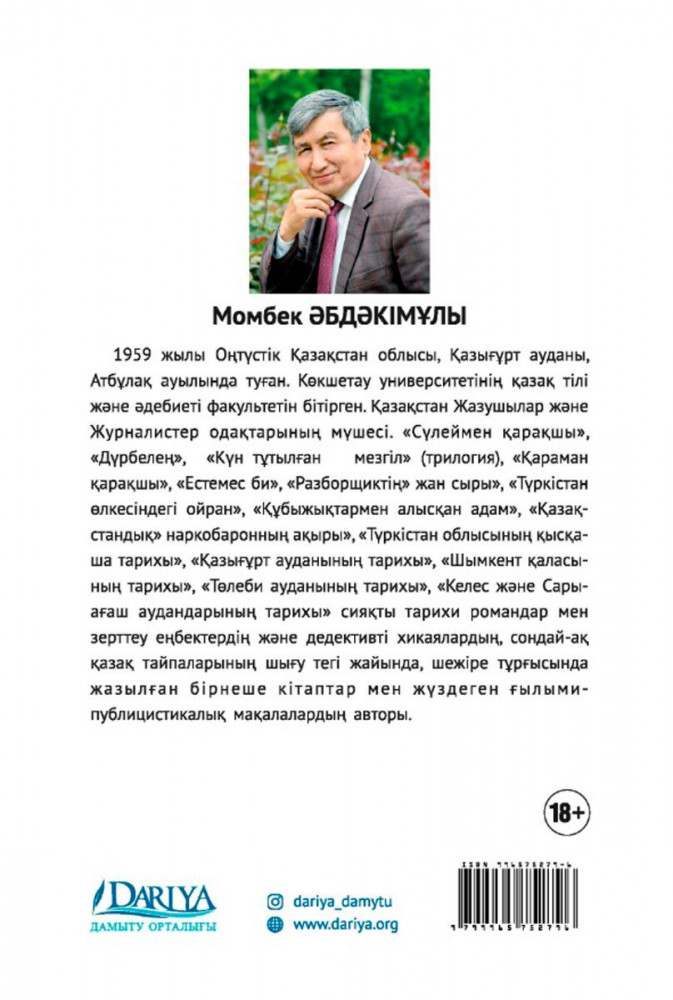 💳 Оплатить за товар можно при получении 🇰🇿 Есть бесплатная доставка по Казахстану 🎁 Копите бонусы с каждой покупки Қараманды халық шартты түрде «қарақшы» деп атағанымен, оның атқарған істері тасадан оқ атып, ауыл тентегінен ұзай алмайтын кейбір бұзықтардың қылықтарына мүлдем ұқсамайтын, тек қанішерлер мен баскесерлер ортасында әділдік орнатам деп күреске түскен, іс-әрекеті кең ауқымды қамтыған қаһарман болған. Жамандыққа жаны қас Қараман, өмір бойы тек кедей мен шаруаға, кембағал мен жетім-жесірге зәбір көрсетушілермен күрескен. Ташкенттегі адам жегіш жөйіттермен алысып, оларды қиратып тастаған. Кеңес өкіметі орнаған кезде бейбіт елді басынып, зәре-иманын ұшырған Өзбекстан, Тәжікстан тауларындағы қаскөй басмашылармен алысады. Байлар мен саудагерлердің дүние-мүліктерін тартып алып, кедей-кепшікке таратып береді. Бірақ өзінің кейбір кереғар істері мен жеке көзқарасы үшін совет өкіметінің түрмелерінде бірнеше мәрте отыруына тура келеді. Қараманның он бес жасынан қырық бес жасына дейінгі ғұмыры «тас төсеніп, күз жастанып» дегендей, аласапыранмен өткен. Қолдарыңыздағы кітапта осылар туралы жан-жақты баяндалады. Мұны зердемен оқыған жан, оның өкімет тарапынан батыр деп мойындалмағанымен, күллі Қазақстан һәм Орта Азия халықтарының сүйікті қаһарманы әрі оларға өте жағымды тұлға болғанын аңғарады. Оның қазақ халқы үшін атқарған істері ағылшындық Робин Гудтың әрекеттерінен де асып түседі. Сондықтан да көпшілік ұғымында ол қайталанбас тұлға, сондай-ақ халық қаһарманы. Қалай десек те, Қараман күрделі тұлға. Оның істері жастарымыздың ұлттық жігерін жандандыруға, әділетсіздіктің жолында аянбай күресуге үлгі болары хақ. Қараманның үнемі биікті аңсайтын қыран жүрегі мен ылғи жеңісті мақсат тұтқан өр кеудесінің сыры осы кітапта жақсы ашылып, әдемі сипатталған. |
